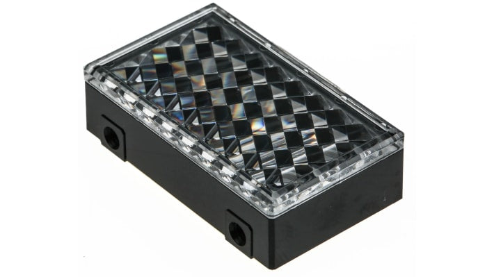 Riflettore per sensore, compatibile con sensori fotoelettrici retro-riflettivi con e senza M.S.R, forma rettangolare, standard CE. Progettato per la serie E3 di Omron, offre un'ottima visibilità per la regolazione dell'asse e ridotta influenza da oggetti metallici. Adatto per applicazioni industriali che richiedono precisione nel rilevamento di oggetti di piccole dimensioni.
