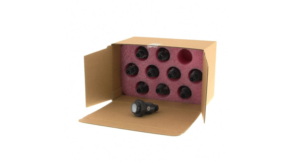 Sensore fotoelettrico cilindrico a retroriflessione, rilevamento 100 mm, uscita PNP, contenitore compatto M18, LED rosso visibile per allineamento facile, funzionamento affidabile in ambienti industriali, connettore M12, distanza di rilevamento da 0,1 a 3 m, modalità di commutazione luce/buio, alimentazione in corrente continua.
