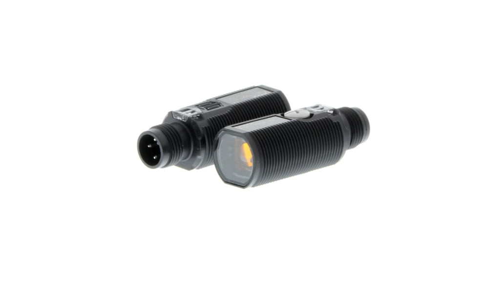 Sensore fotoelettrico cilindrico a fascio diretto, rilevamento fino a 15 m, uscita NPN/PNP, con connettore M12. Corpo in plastica, dimensione M18 assiale. Elevata precisione e misurazioni stabili, alta qualità e affidabilità. Modello E3F1-TN21, marchio Omron.