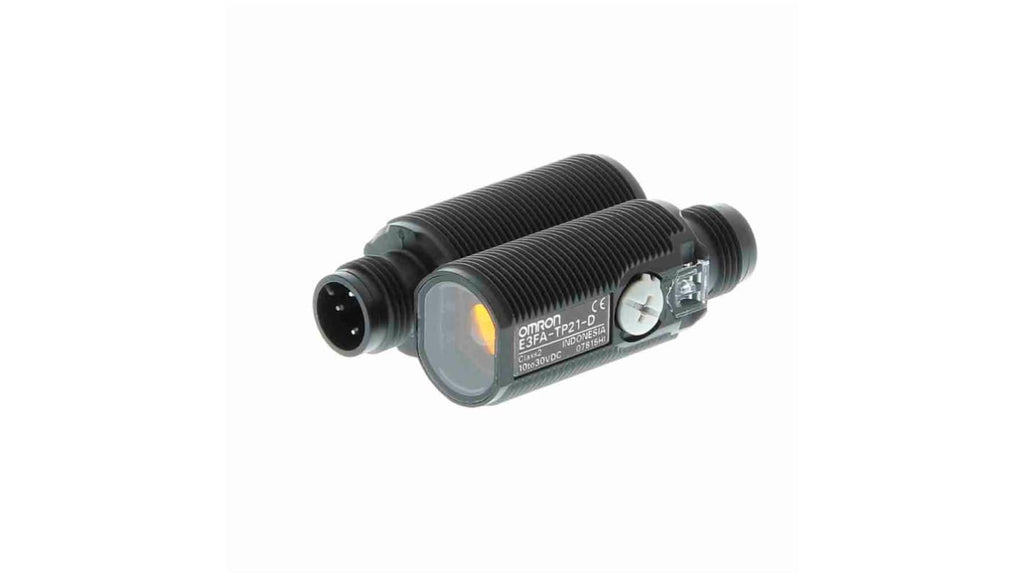 Sensore fotoelettrico cilindrico, rilevamento a fascio diretto, gamma di rilevamento 20 m, uscita PNP, connettore M12, compatibile con la serie E3F2, facile da installare, formato compatto. Marchio Omron, codice costruttore E3FA-TP21-F2.