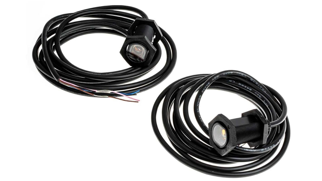 Sensore fotoelettrico cilindrico a fascio diretto, rilevamento fino a 20 m, uscita PNP. Design compatto, alloggiamento in plastica ABS, grado di protezione IP67 e IP69K. Tensione massima 30V, corrente massima 40 mA, tempo di risposta 500 μs. Temperatura operativa da -25°C a +55°C, cavo a 4 fili da 2 m. Amplificatore integrato, protezione contro cortocircuiti e inversione di polarità. Modello E3FATP112M, marchio Omron.