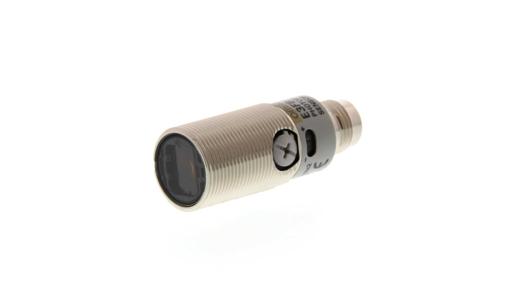 Sensore fotoelettrico cilindrico a diffusione, rilevamento fino a 300 m, uscita PNP, alimentazione CC, modalità di commutazione luce/buio. Contenitore robusto e impermeabile, alta qualità e affidabilità, elevata protezione EMC, elevata immunità alla luce. Facile montaggio e configurazione, LED rosso luminoso per allineamento visibile a lunghe distanze. Modello E3FB-BP21, marchio Omron.