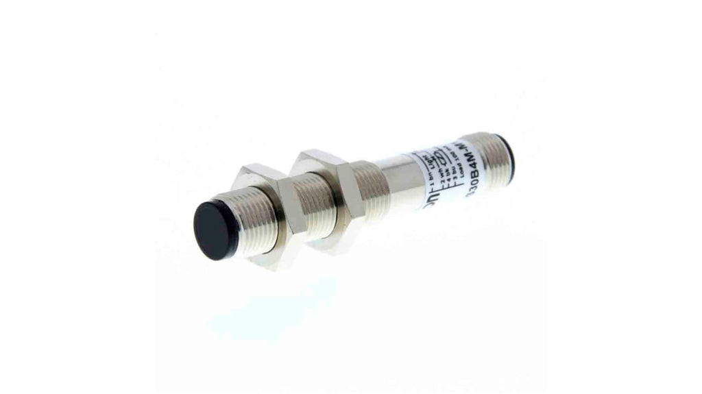 Sensore fotoelettrico a riflessione diffusa, cilindrico, serie E3H2, distanza di rilevamento fino a 300 mm, uscita NPN, connettore M12. Design miniaturizzato, adatto per applicazioni industriali.