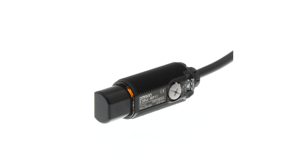 Sensore fotoelettrico cilindrico a retroriflessione, rilevamento da 100 a 4000 mm, uscita NPN, corpo in plastica, cavo da 2 m. Elevata precisione, misurazioni stabili, alta qualità e affidabilità. Serie E3FA/E3RA/E3FB/E3RB.