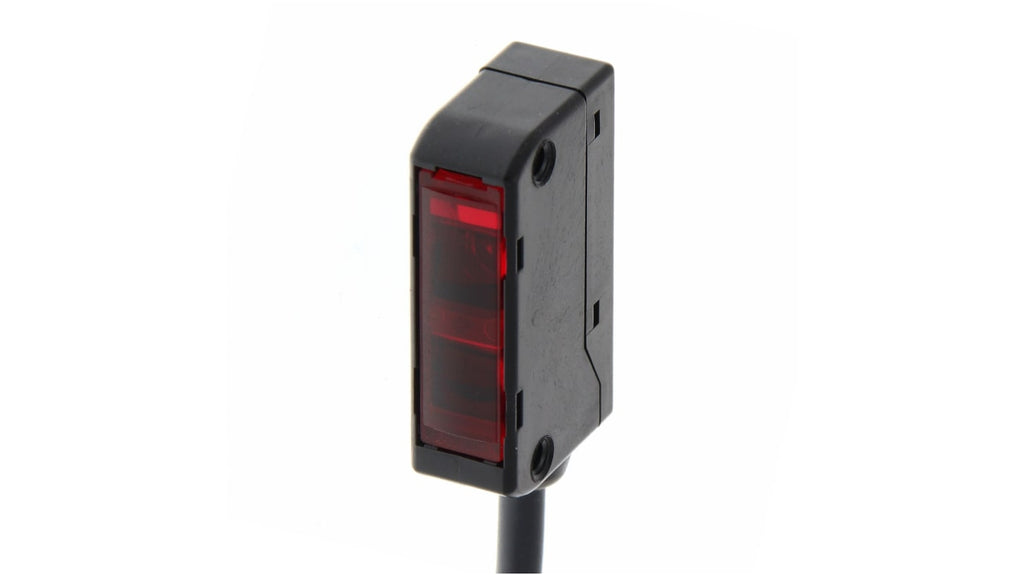Sensore fotoelettrico a riflessione limitata, rilevamento 60 mm, uscita PNP, collegamento elettrico tramite cavo, serie E3S-LS3, grado di protezione IP40. Progettato per rilevamento stabile su circuiti stampati e fogli di pellicola trasparente. Compatibile con applicazioni industriali.
