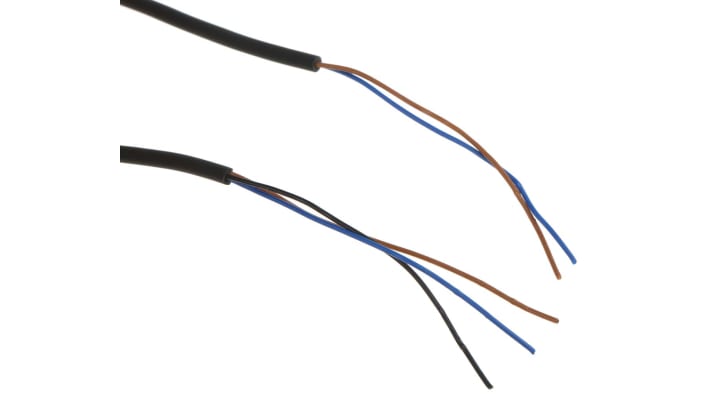 Sensore fotoelettrico a fascio diretto, rilevamento 500 mm, uscita PNP, cavo a 3 fili da 2 m. Tensione massima 26.4V, corrente massima 50 mA, tempo di risposta 1 ms. Grado di protezione IP67, temperatura operativa da -25°C a +55°C. Custodia in PBT, serie E3T, dotato di LED per allineamento e minima influenza di oggetti riflettenti.