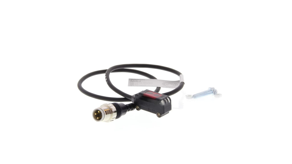Sensore fotoelettrico a riflessione limitata, Omron serie E3T, distanza di rilevamento 5,15 mm, uscita PNP, connettore precablato M8 a 3 pin, grado di protezione IP67, sincronizzazione degli impulsi per elevata immunità alla luce ambientale.