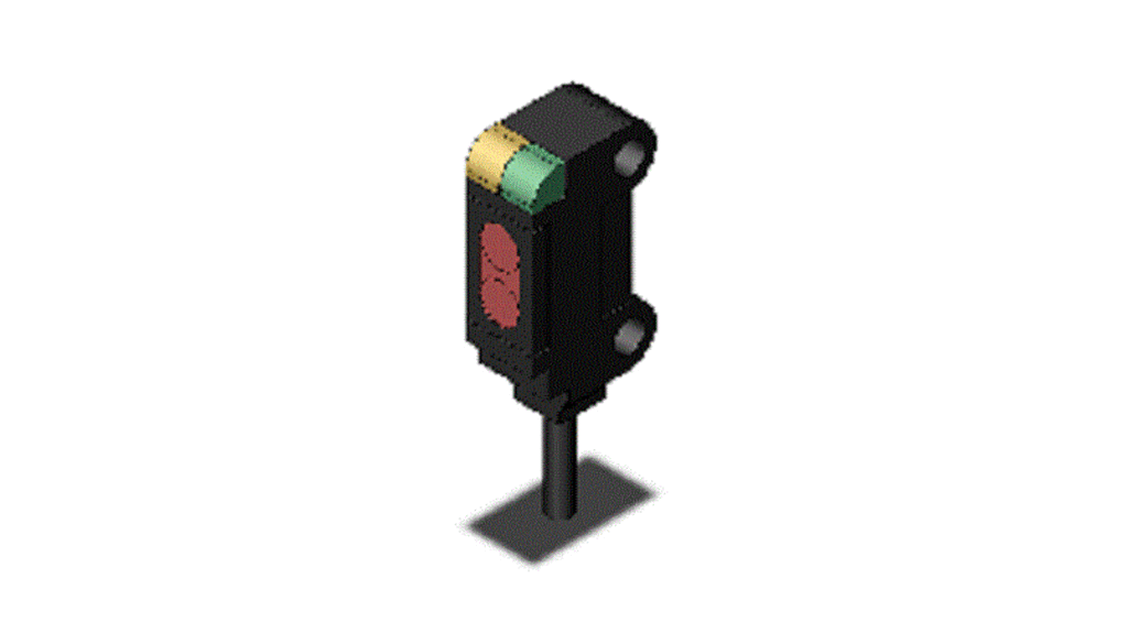 Sensore fotoelettrico rettangolare a riflessione, riflettività limitata, rilevamento 15 mm, uscita PNP, alimentatore incorporato, compatibile con alimentatori c.a./c.c., LED rosso per visibilità del punto, indicatori grandi visibili da lontano, modalità di commutazione luce, collegamento elettrico tramite cavo. Modello E3T-SL13M 2M, marchio Omron.