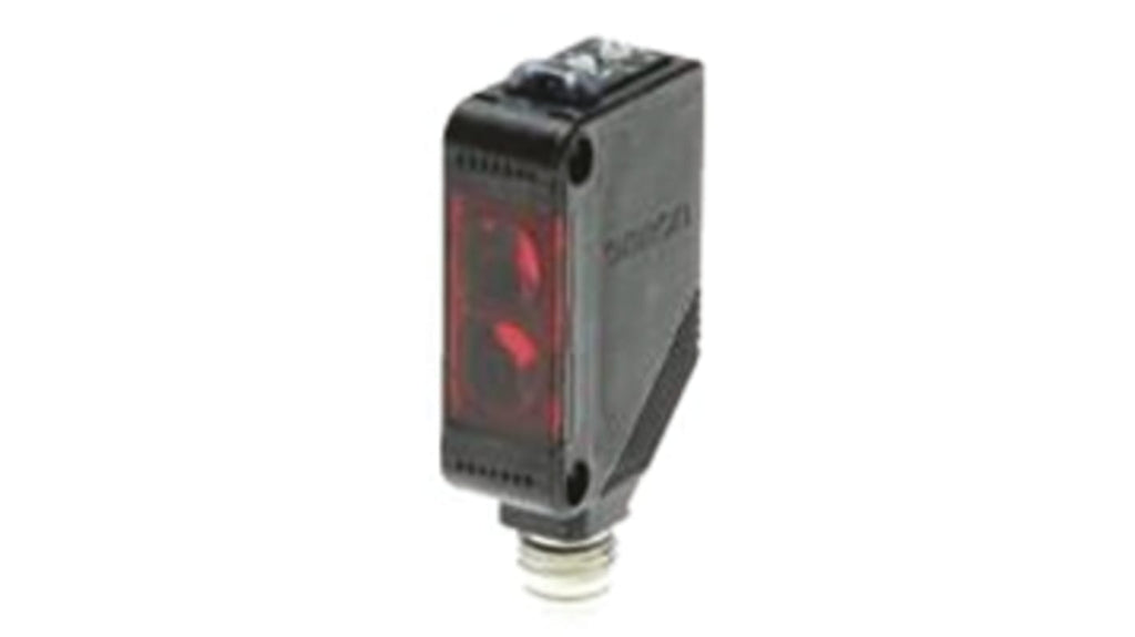 Sensore fotoelettrico a fascio passante, NPN, tensione di alimentazione 12-24 V c.c., grado di protezione IP67, contenitore in PBT, dimensioni 43,5 x 10,8 x 20 mm, temperatura operativa -25 a +55 gradi Celsius, tempo di risposta 1 ms, frequenza di commutazione 60 Hz, sorgente di luce LED rosso, connettore M8, zona morta ridotta, protezione cortocircuito e inversione di polarità.