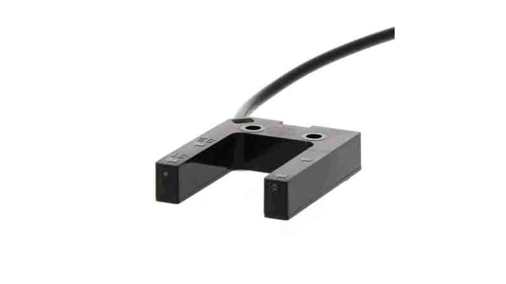 Sensore fotoelettrico a forcella, rilevamento 25 mm, uscita PNP, alimentazione 12-24V c.c., cavo da 2 m, design scanalato per assenza di regolazione ottica, tempo di risposta massimo 1 ms, grado di protezione IP64, ideale per applicazioni in magazzini automatizzati. Modello della serie E3Z.