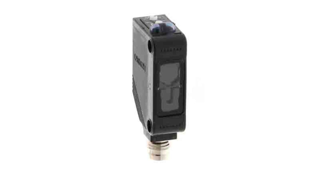 Sensore fotoelettrico rettangolare a retroriflessione, Omron E3Z-LR66, rilevamento 15 mm, uscita NPN, con amplificatore incorporato, contenitore in plastica compatto, luce LASER visibile per posizionamento di precisione, grado di protezione IP67, connettore a 4 pin M8, LED ad alta potenza, visibilità del fascio migliorata.