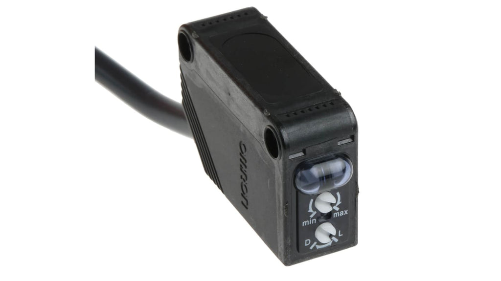 Sensore fotoelettrico rettangolare a scansione diffusa, rilevamento fino a 1 m, uscita PNP, cavo a 3 fili da 2 m. Custodia in PBT, grado di protezione IP67, temperatura operativa da -25 a +55 gradi Celsius, corrente massima 100 mA, tempo di risposta 1 ms, sorgente di luce infrarossa. Configurazioni luce-ON e buio-ON selezionabili, protezione contro cortocircuiti e inversione di polarità.
