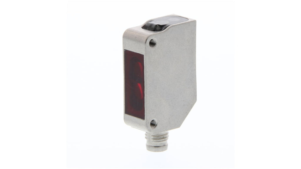 Sensore fotoelettrico a soppressione di sfondo, rilevamento fino a 100 mm, uscita PNP, grado di protezione IP67, connettore a 4 pin M8, serie E3ZM. Compatto e progettato per applicazioni industriali.