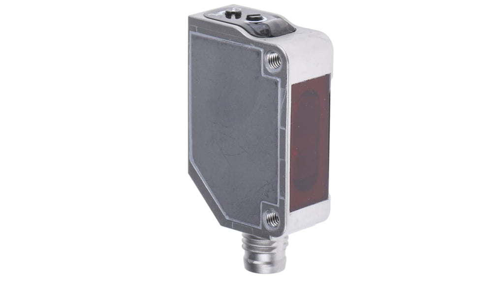 Sensore fotoelettrico a retroriflessione, gamma di rilevamento 100 mm a 4 m, uscita PNP, con connettore a 4 pin M8. Custodia in acciaio inox SUS316L, grado di protezione IP67 e IP69K, temperatura operativa da -25 a +55 gradi Celsius. Tempo di risposta 1 ms, corrente massima 100 mA, modalità di commutazione luce/buio. Certificato CE, approvato dall'Henkel Ecolab Institute. Dimensioni 32,2 x 10,8 x 21 mm.