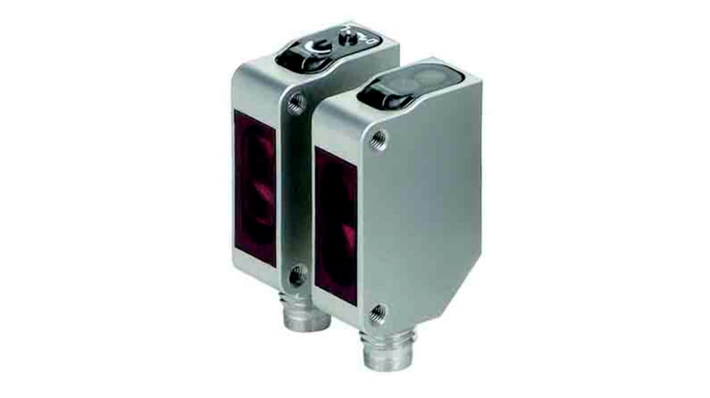 Sensore fotoelettrico a fascio diretto, rilevamento 800 mm, uscita PNP, contenitore in acciaio inox SUS 316L, grado di protezione IP67 e IP69K, tempo di risposta massimo 1 ms, sorgente luminosa LED a infrarossi, connettore a 4 pin M8, protezione contro inversione di polarità e cortocircuiti, testato con detergente e resistenza chimica. Serie E3ZM.