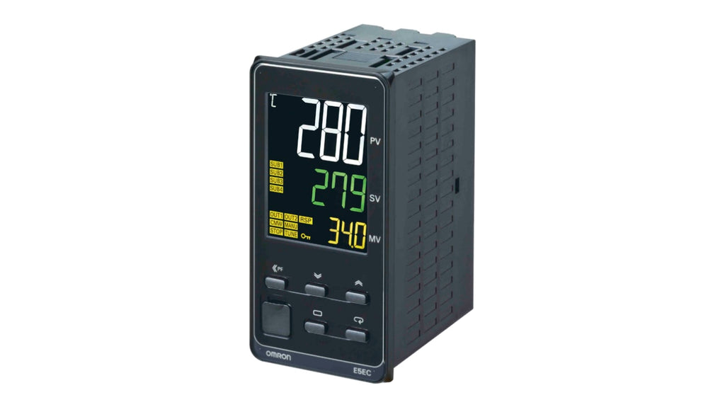 Termoregolatore PID Omron E5EC, tensione di alimentazione 100-240 V c.a., dimensioni 96 x 48 mm, 4 uscite SSR, relè a stato solido, logica, montaggio a pannello, tipo di ingresso universale (PT100, termocoppia, analogico), campionatura ad alta velocità 50 ms, corpo compatto, ampio display PV bianco con altezza 10,5 mm, configurazione senza alimentazione tramite collegamento a computer.