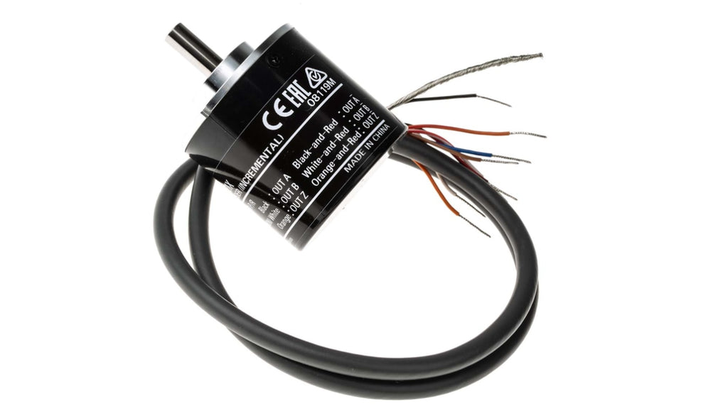 Encoder rotativi incrementali Omron, tecnologia incrementale, serie E6B2, 1000 impulsi per giro, uscita Line driver, diametro albero 6 mm, tensione di alimentazione 5 V c.c., grado di protezione IP50, altezza complessiva 59 mm, larghezza complessiva 40 mm, temperatura operativa da -10 a +70 gradi Celsius, rotazione massima 6000 giri/min, frequenza di commutazione 100 kHz.