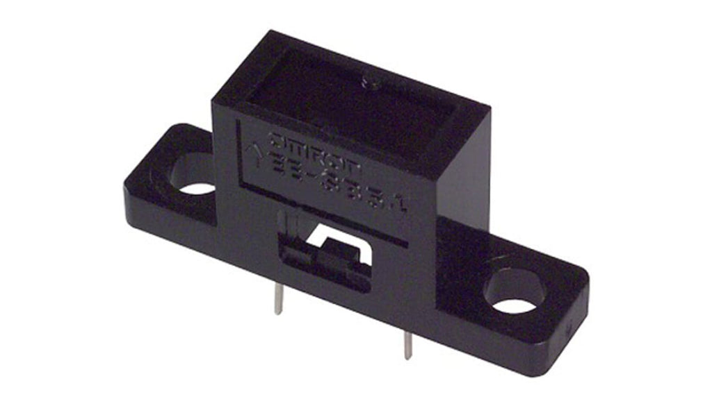 Microinterruttore a saldare, Omron, corrente nominale 50 mA, temperatura operativa da -25 a +80 gradi Celsius, tipo terminale a saldare, sensore ottico scanalato, LED a infrarossi e fototransistor in contenitore sagomato, amplificatore a trigger di Schmitt integrato per transizione pulita e uscita stabile. Modello EE-SB5.