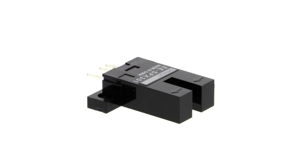 Sensore fotoelettrico a forcella, rilevamento a fascio passante, gamma di rilevamento 3600 mm, uscita NPN, modalità di commutazione buio, contenitore in plastica nera, temperatura d'esercizio da -10 a 55 gradi Celsius, connettori per impieghi generali, lunga durata utile grazie alla combinazione di sensori meccanici e ottici. Marchio Omron, codice costruttore EE-SPX301.