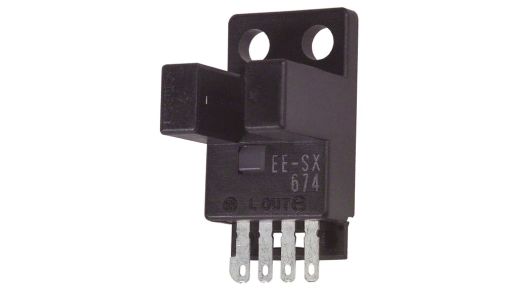 Sensore fotoelettrico a forcella, rilevamento 5 mm, uscita NPN, alloggiamento in plastica nera, indicazione LED, grado di protezione IP50, temperatura operativa da -10 a +55 gradi Celsius, corrente massima 12 mA, tempo di risposta 0.17 ms, sorgente di luce infrarossa, connettore a 4 pin, compatibile con connettori codici 219-2448 e 219-2454, conforme agli standard CE.