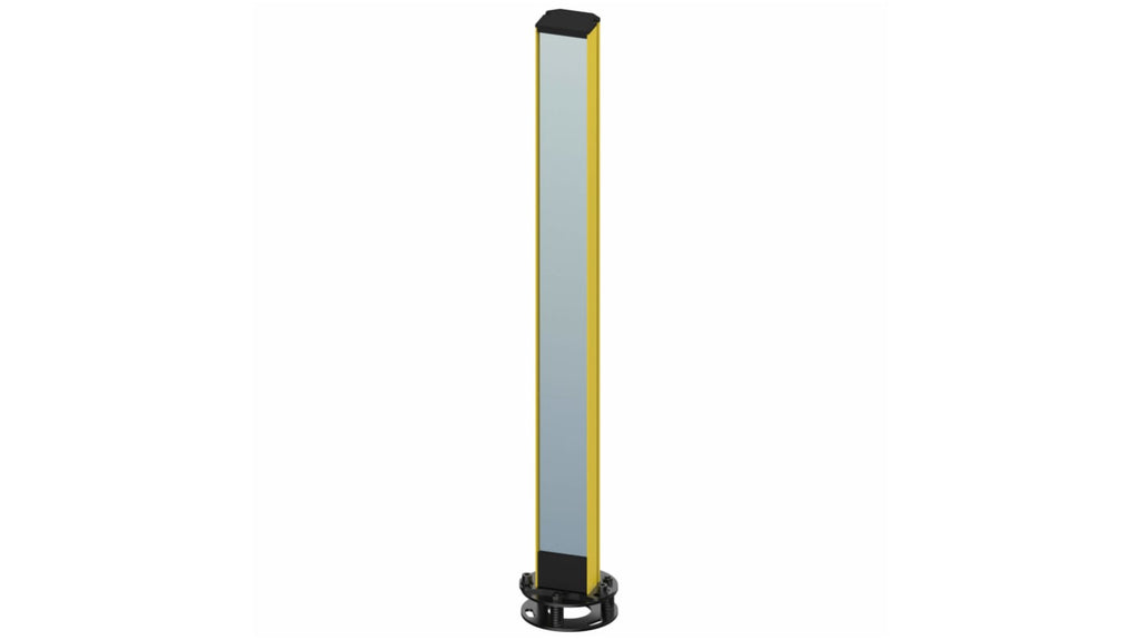Colonna a specchio per barriere fotoelettriche di sicurezza. Altezza 1310 mm, per uso con F3SG-SR/PG fino a 1120 mm. Struttura in lega di alluminio, base in acciaio laminato a caldo, cappuccio in resina PBT, specchio in vetro. Lunghezza cavo 1.3 m.