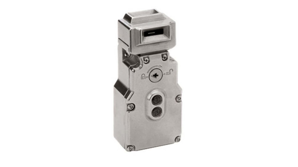 Interruttore di interblocco di sicurezza con chiave, 2NC/1NA, meccanismo di bloccaggio e sblocco elettromagnetico, attuatore incluso, contatti di sicurezza 2NC, corpo in acciaio inox, grado di protezione IP69K, progettato per applicazioni nell'industria chimica e della lavorazione degli alimenti, conforme alla norma IEC 6094751, modello F3S-TGR.