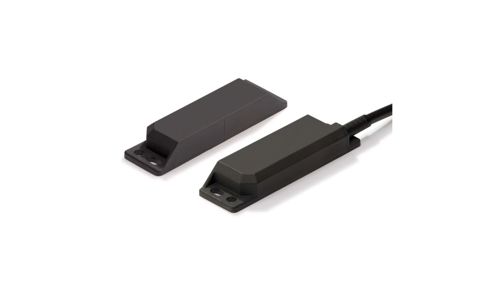 Interruttore di sicurezza senza contatto serie Omron F3S-TGR, sensore allungato, contenitore in plastica, contatti 2NC, tecnologia Reed, frequenza di commutazione massima 1Hz, temperatura d'esercizio da -25 a 80 gradi Celsius, grado di protezione IP67, cavo di 5m, tipo magnetico, dimensioni 37mm x 15mm.