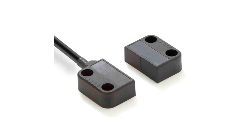 Interruttore di sicurezza senza contatto Omron F3S-TGR-N, tensione 24V cc, contatti 2NC, custodia in plastica, connessione M8 a 4 pin, attuatore magnetico, grado di protezione IP67, dimensioni 15mm x 37mm, adatto per pulizia ad alta pressione e processi CIP/SIP.