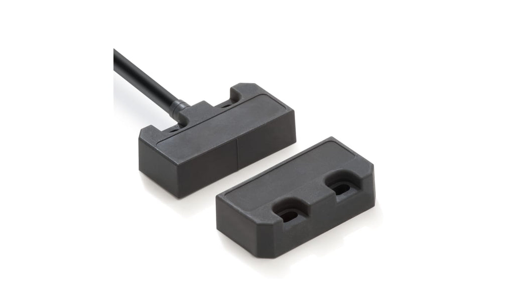 Interruttore di sicurezza senza contatto Omron F3S-TGR, dotato di sensore magnetico, configurazione contatti 2NC/1NO, custodia in plastica, connessione M12, protezione IP67, temperatura d'esercizio da -25 a 80 gradi Celsius, larghezza 15 mm, lunghezza 37 mm, frequenza di commutazione massima 1 Hz.