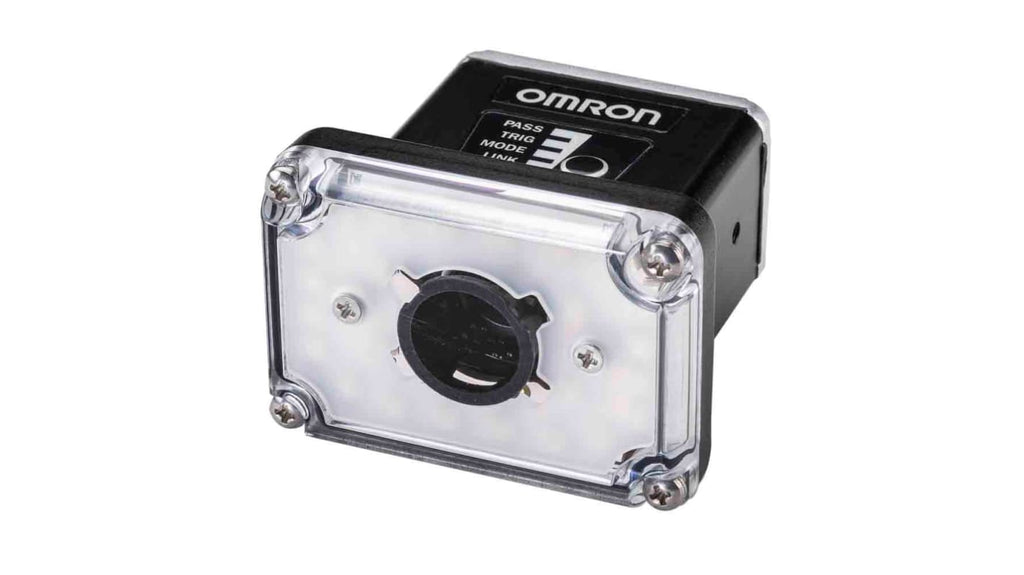 Sensore di visione monocromatico. Risoluzione 1,2 MP, tecnologia CMOS, LED bianco. Messa a fuoco automatica, gamma di rilevamento 50 a 300 mm. Connessioni Ethernet/IP, Ethernet TCP/IP, PROFINET Slave, seriale RS-232C. Grado di protezione IP65/IP67. Configurazione semplice con AutoVISION. Codice costruttore F430-F000M12M-RWA, marchio Omron.