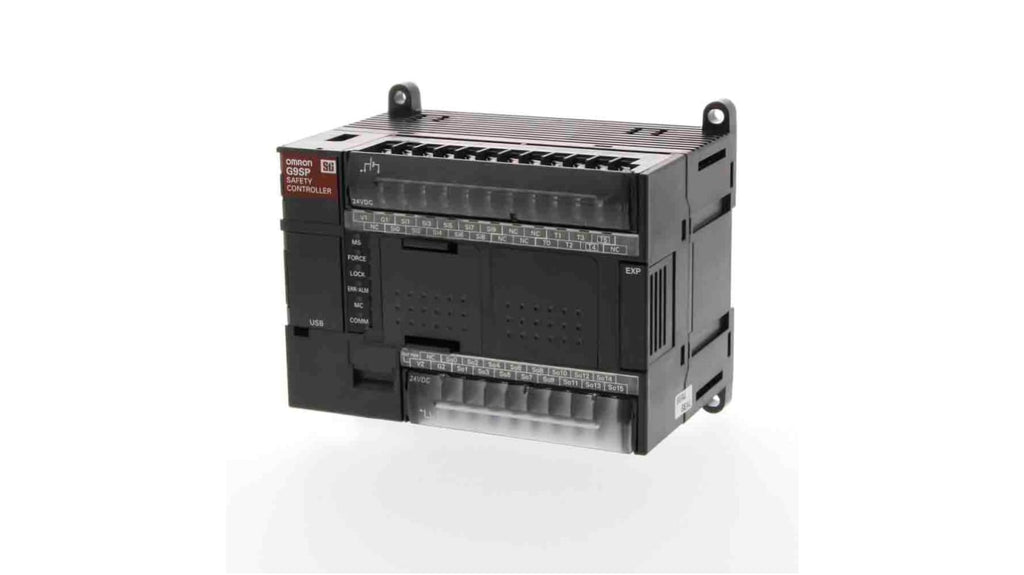 Modulo di ingresso/uscita Omron serie G9SP, 24 V c.c., 10 ingressi di sicurezza PNP, 16 uscite di sicurezza PNP, 6 uscite di prova, montaggio su guida DIN da 35 mm, corrente di consumo 500 mA. Codice costruttore G9SP-N10D.