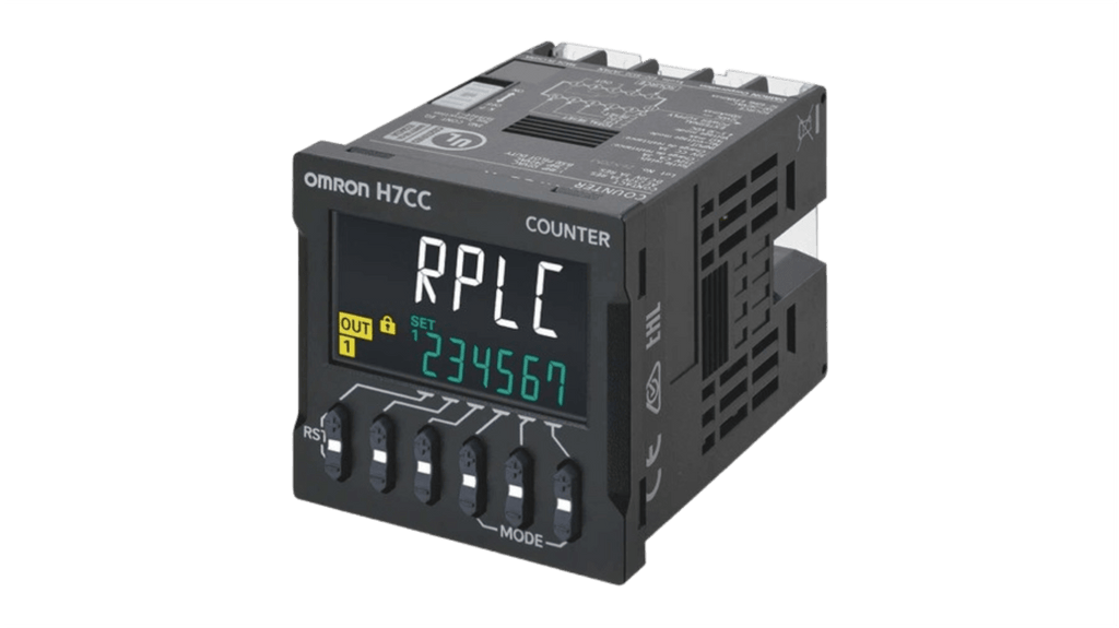 Contatore digitale Omron, tensione di alimentazione 12 a 48 V c.c. e 24 V c.a., display LCD 6 cifre, frequenza di conteggio massima 50 a 60Hz, grado di protezione IP66, funzione di prescaling, temperatura d'esercizio da -10 a 55 gradi Celsius, tipo di connessione a innesto. Codice costruttore H7CC-A11SD.