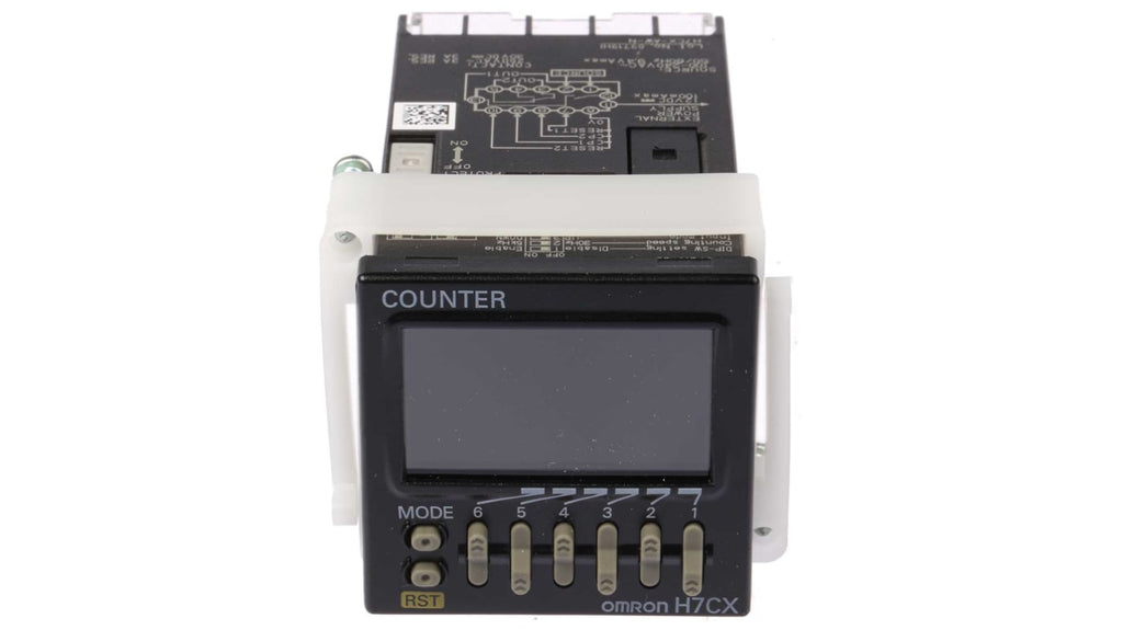 Contatore digitale multifunzione per montaggio a pannello, tensione 100-240 V c.a., frequenza di conteggio massima 5 kHz, display LCD 6 cifre, intervallo di misurazione -99999 a 999999, modalità doppio contatore, contatto di ingresso NPN o PNP, morsetti a vite, temperatura operativa -10 a 55 gradi Celsius, grado di protezione IP66, peso 130 g.