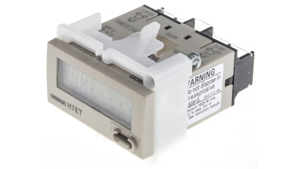 Contatore Omron con display LCD a 7 cifre, microcontatore resistente agli urti, blocco tasti per prevenire azionamenti accidentali, alimentazione autonoma tramite batteria interna sostituibile, doppia modalità di funzionamento, display resettabile. Grado di protezione IP66, conforme agli standard EMC EN50082-2 e EN50081-1. Intervallo di misurazione 0 a 999 ore 59 minuti 59 secondi, 0 a 9999 ore 59,9 minuti. Temperatura operativa da -10 a +55 gradi Celsius, peso 60 grammi. Montaggio a filo.