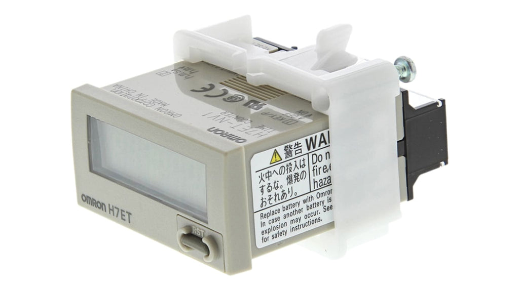 Timer elettronico per montaggio a pannello 24 x 48 mm, tensione di alimentazione 4,5 a 30 V c.c., display LCD a 7 cifre con altezza cifra 8,6 mm, retroilluminato, protezione IP66, temperatura operativa da -10 a +55 gradi Celsius, corpo di 48,5 mm, peso 60 g, conforme alle norme EMC EN50082-2 e EN50081-1, disponibile in contenitore nero o beige.