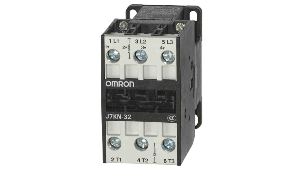 Contattore Omron, 3 poli, 32 A, 15 kW, bobina 24 V c.c., collegamento elettrico a vite, raccordo a scatto su guida DIN, dimensioni H78 x W45 x D104.5 mm, temperatura ambiente d'esercizio da -40 a 60 °C, a prova di dita. Codice costruttore J7KN-32 24D.
