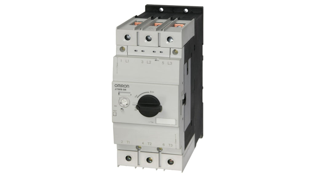 Interruttore automatico di protezione del motore Omron, progettato per motori a induzione trifase, tensione 200 a 690 V, corrente nominale 55 a 75 A, dimensioni H105 x W45 x D85,5 mm, grado di protezione IP20, temperatura d'esercizio da -20 a +60 gradi, classe di protezione motore 10, frequenza nominale 50/60 Hz. Codice costruttore J7MN-9R-75.