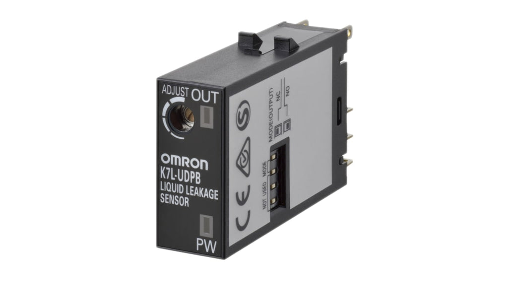 Sensore di perdita del liquido Omron serie K7L, 1 ingresso, montaggio A innesto, tensione sonda 24V cc, alimentazione 12-24V cc, uscita PNP, temperatura operativa -10°C/+55°C, dimensioni 12.8mm x 28.8mm x 46mm, standard CE, cULus, UL, rilevamento di liquidi con impedenze fino a 50 mΩ, circuito di cancellazione dei disturbi, applicazioni multicanale.