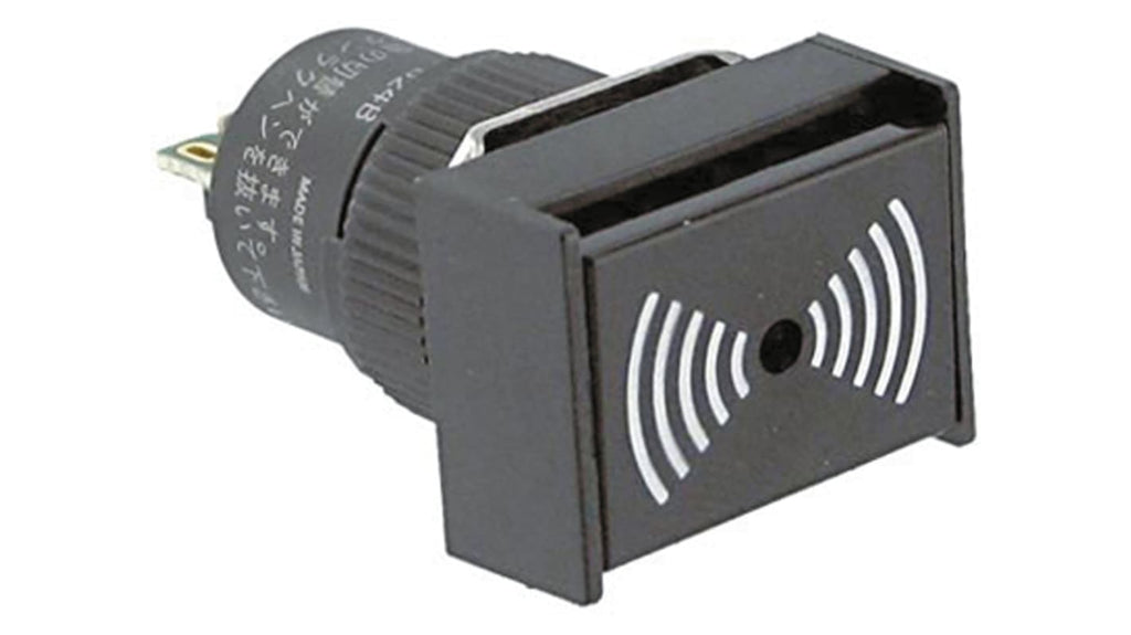 Spia luminosa a pannello Omron serie M2BJ, configurabile con ponticello per uscita audio intermittente o costante, diametro foro 22 mm, protezione IP40, montaggio a pannello, profondità dietro al pannello 28,5 mm, spessore massimo pannello 5 mm. Codice costruttore M2BJ-B24B.