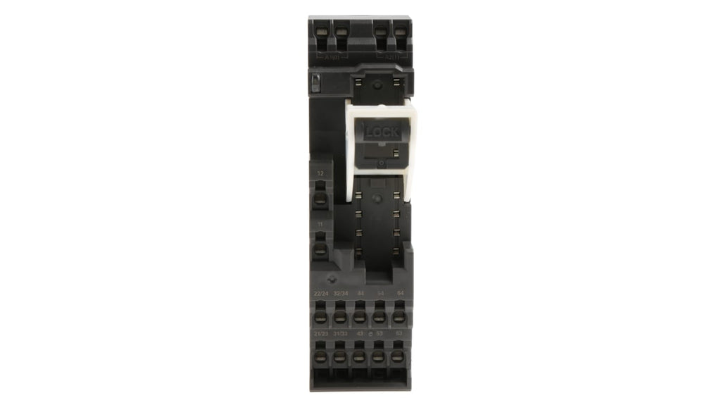 Zoccolo femmina per relè, compatibile con relè serie G7SA, tensione 24V cc, corrente nominale 6A, configurazione a 14 pin, terminali a innesto, montaggio su guida DIN, peso 70 g, resistenza dielettrica 4 kV, tenuta stagna, indicatore LED per stato relè, adatto per cavi solidi o intrecciati.