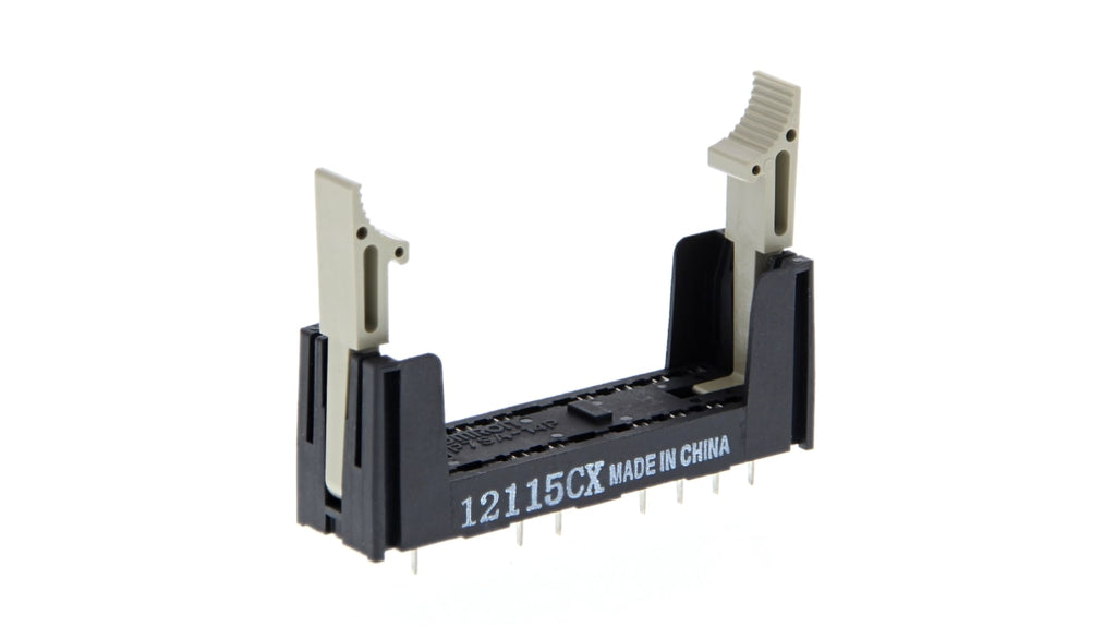 Zoccolo per relè Omron serie P7SA, 14 pin, montaggio su guida DIN, resistenza di isolamento 1000 Mohm, corrente continua 6 A, temperatura d'esercizio -40 a 85 gradi, umidità ambiente 5-85%. Compatibile con la serie G7SA.
