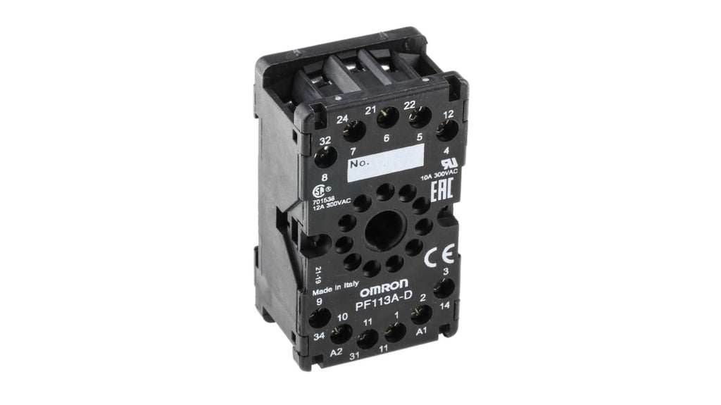 Zoccolo relè per serie MKS, connettore femmina a 11 pin, morsetti a vite, montaggio su guida DIN. Tensione 300V ca, corrente nominale 12A, temperatura operativa da -25 a +85 gradi. Dimensioni 65 x 38 x 27 mm, peso 65 g, grado di protezione IP20. Conforme RoHS, certificazione UL e IEC (TÜV). Compatibile con relè Omron serie MK-S.