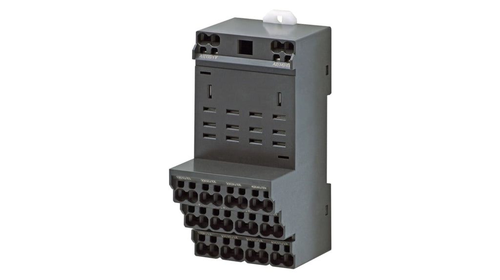 Zoccolo per relè a 4 poli, compatibile con la serie PTF. Tensione 250V, corrente nominale 10A. Montaggio a telaio su guida DIN o a vite. Tecnologia Push-In Plus per cablaggio semplificato, connettori femmina per due fili per foro terminale. Struttura 'senza mani' per facilitare l'installazione. Assenza di allentamento della vite per applicazione senza manutenzione.