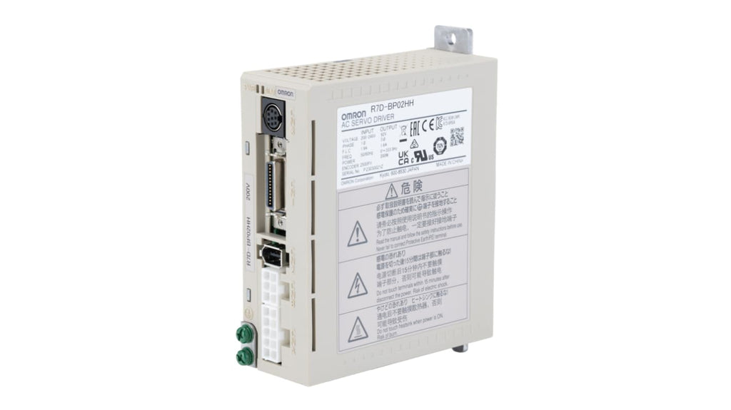 Servocomando Omron, 1 fase, 200 W, 200 V ca, 4,9 A. Servomeccanismi SmartStep 2 ultracompatto, facile configurazione, soppressione vibrazioni, filtro adattativo, regolazione automatica online, due limiti di coppia, quattro impostazioni di velocità interne. Dimensioni: 40 mm x 110 mm x 140 mm. Temperatura operativa: 0°C a +55°C. Codice costruttore: R7D-BP02HH.