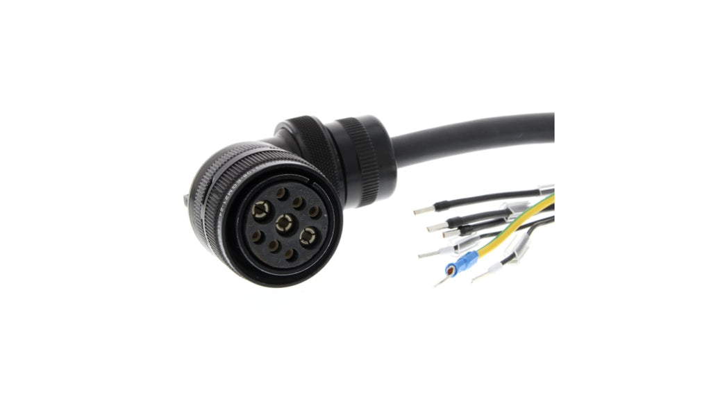 Cavo di alimentazione per servomotori. Compatibile con servomotori serie G5, tensione 400 V, lunghezza 10 m. Tipo accessori: cavo di alimentazione. Marchio: Omron, codice costruttore: R88A-CAKF010BR-E.