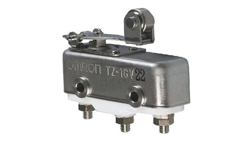 Interruttore di fine corsa Omron, leva a rullo, configurazione NO/NC, tensione nominale 250V, corrente massima 1A, protezione IP00. Temperatura operativa da -65 a +400 gradi Celsius, vita utile meccanica 100000 operazioni, vita utile elettrica 50000 operazioni. Dimensioni 49.2mm x 21.8mm x 17.4mm, montaggio posteriore o anteriore, tipo di connessione a vite. Codice costruttore TZ-1GV22.