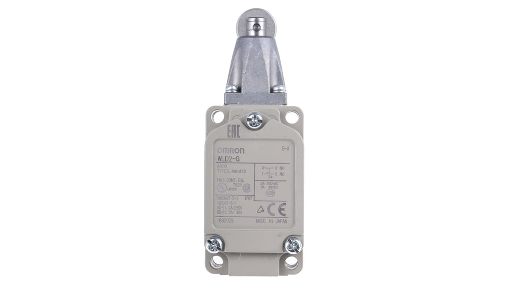 Interruttore di fine corsa Omron, leva a rullo, configurazione SPDT, stato normale NO/NC, tensione massima 600V CA, corrente massima 10A, grado di protezione IP67, materiale alloggiamento in alluminio pressofuso, temperatura operativa da -10°C a +80°C, orientamento di montaggio laterale, durata meccanica 15000000 operazioni, tipo di connessione PG13.5, serie WL, standard CE.