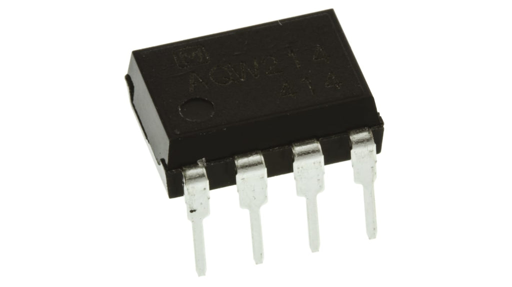 Relè a stato solido AQW214 photoMOS, montaggio su circuito stampato, corrente di carico massima 0,1 A, tensione di carico massima 400 V, configurazione contatto DPST, uscita MOSFET, contenitore DIP a 8 pin, dimensioni 9,78 x 6,4 x 3,9 mm, temperatura operativa da -40 a +85 gradi Celsius, tempo massimo di attivazione 0,5 ms, corrente di dispersione 1 μA, terminale su foro.