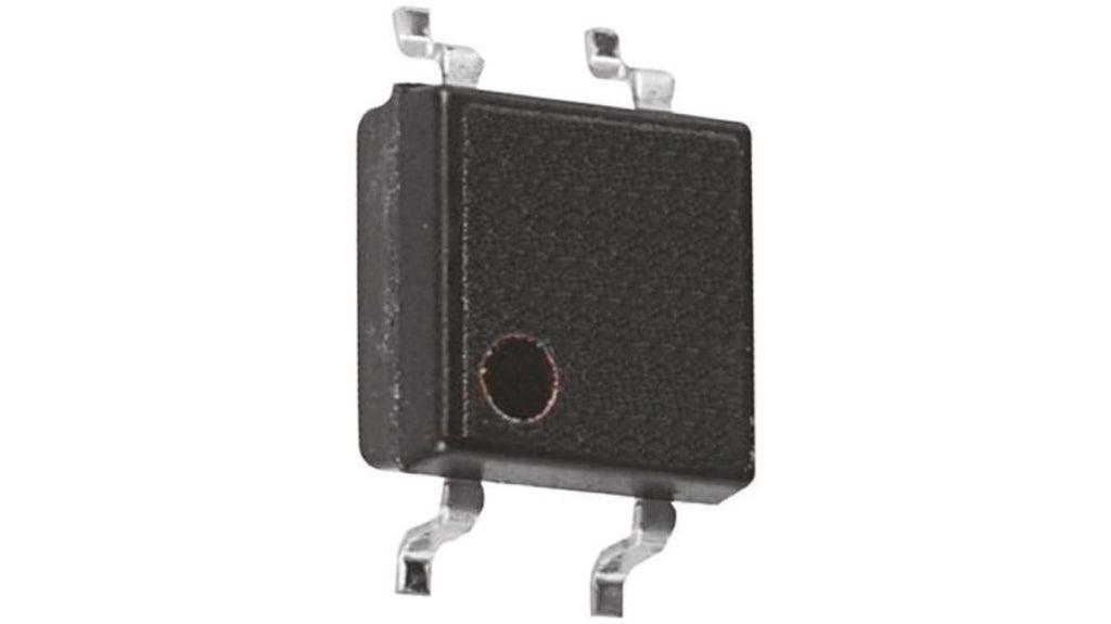 Relè a stato solido per montaggio su circuito stampato, corrente di carico massima 0,25 A, tensione di carico massima 40 V, configurazione contatto SPST, tipo di terminale montaggio superficiale, uscita PhotoMOS, package SOP4, tempo massimo di attivazione 0,5 ms, dimensioni 4,3 x 4,4 x 2,1 mm, temperatura di esercizio -40 a +85 gradi Celsius, corrente di dispersione 10 nA, basso livello di corrente di dispersione 1 μA.