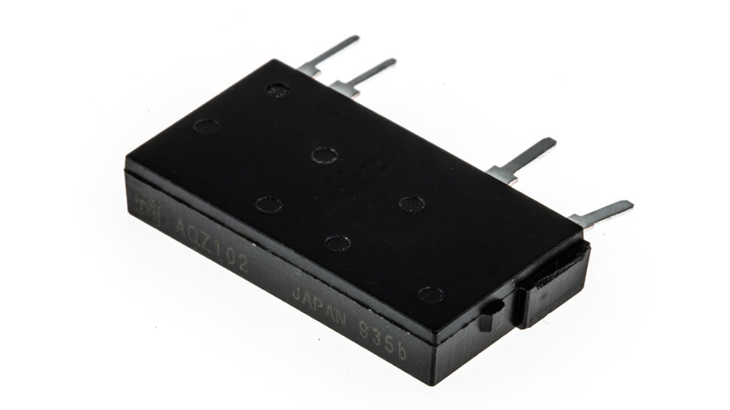 Relè a stato solido per montaggio su circuito stampato, corrente di carico massima 4 A, tensione di carico massima 60 V, configurazione contatto SPST, uscita MOSFET, dimensioni 21 x 3,5 x 12,5 mm, temperatura di esercizio da -40 a +85 gradi Celsius, tempo massimo di attivazione 10 ms, corrente di dispersione 10 μA, autorizzazioni UL, C-UL, VDE. Marchio Panasonic, serie AQZ.